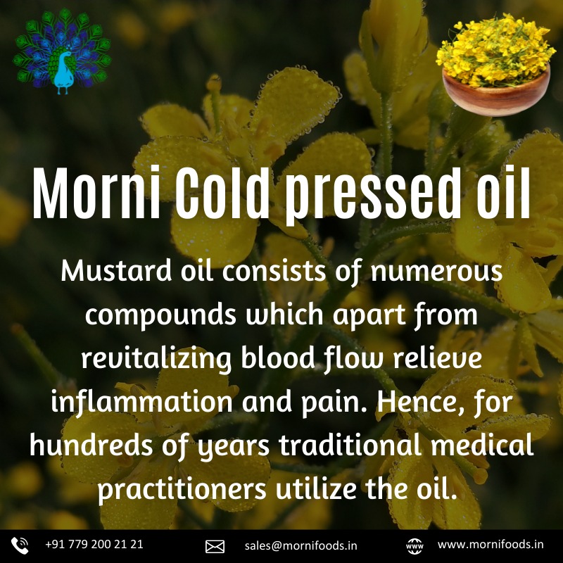 Pure mustard oil extracted from the finest quality mustard seeds is called Morni Kachi ghani Kolhu mustard oil or Cold Pressed Mustard oil or Sarso ka tel. In a well-equipped laboratory with a sole focus on producing edible Kachi ghani Kolhu mustard oil or Cold Pressed Mustard oil or Sarso ka tel, it is prepared by crushing mustard seeds in a wooden kolhu before being made step by step. On the other hand, Kachi ghani Kolhu mustard oil or Cold Pressed Mustard oil or Sarso ka tel is currently thought to be one of the healthiest oil and preventive against cardiovascular illnesses.