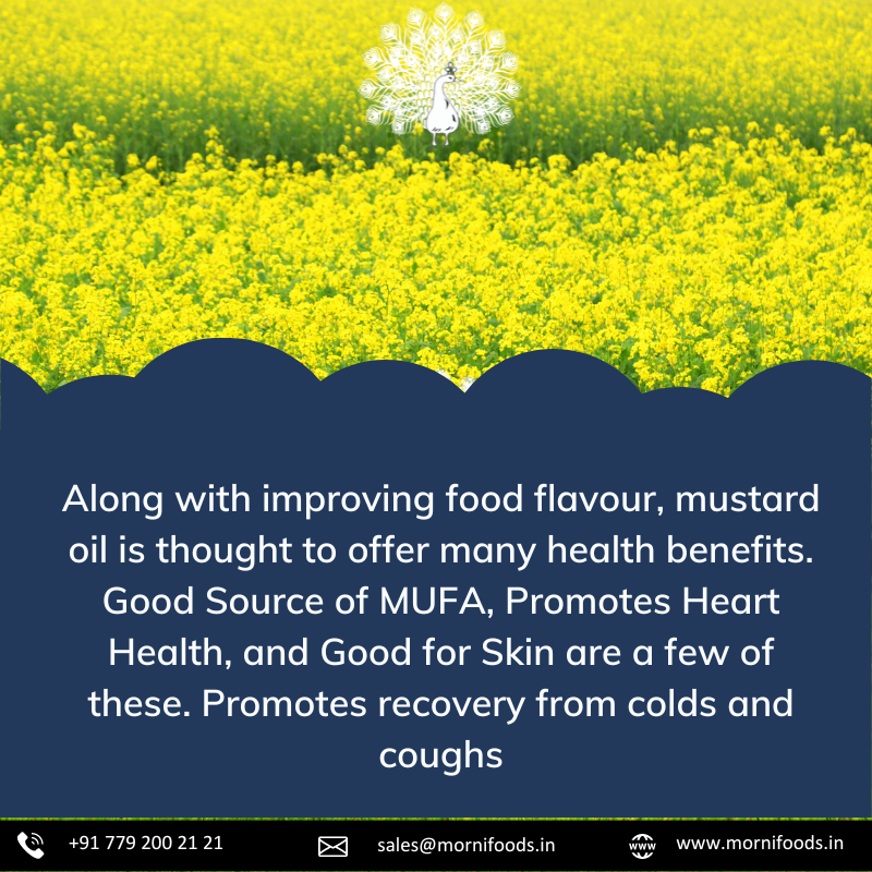 This vegetable oil is the end product of crushing the seeds. Omega 3 and Omega 6 fatty acids are highly present in our Morn Mustard Oil. These "good fats" aid in the prevention of numerous cardiovascular conditions. The perfect balance of minerals and antioxidants, together with powerful antimicrobial properties It has anti-inflammatory properties as well. Your health will benefit from morni oil.